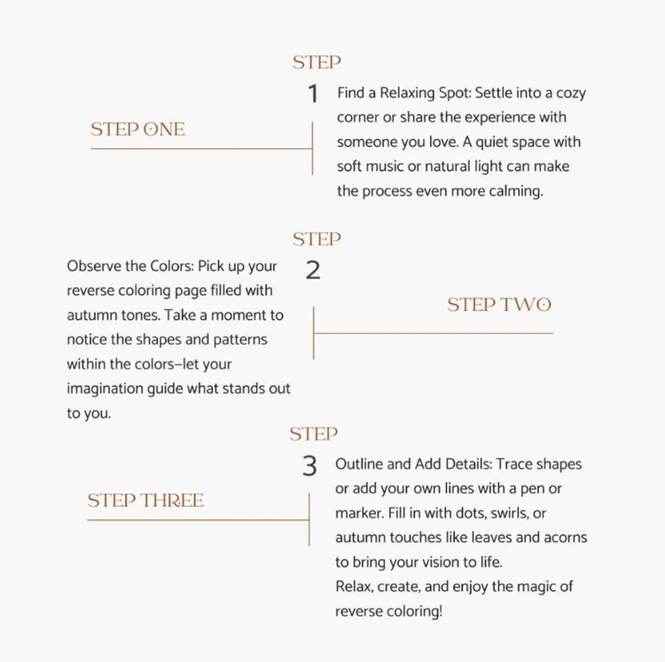 This 30-page printable reverse coloring download is packed with vibrant fall leaves, earthy tones, and flowing backgrounds to draw on and relax.